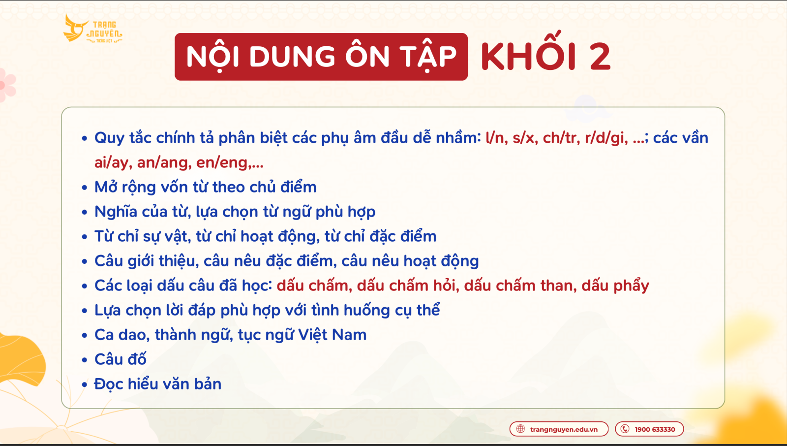Nội dung ôn tập Kì thi Hương (cấp Quận) - Trạng Nguyên Tiếng Việt Khối 2