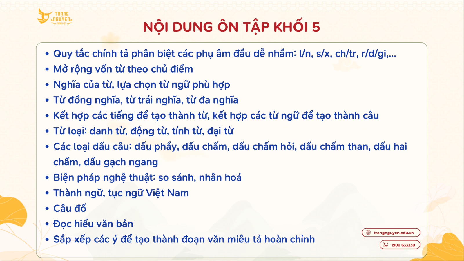 Nội dung ôn tập vòng sơ khảo cấp trường Sân chơi Trạng Nguyên Tiếng Việt năm học 2024-2025 - Khối 5