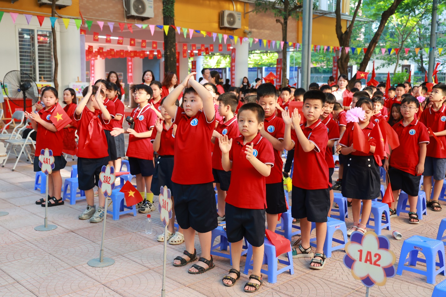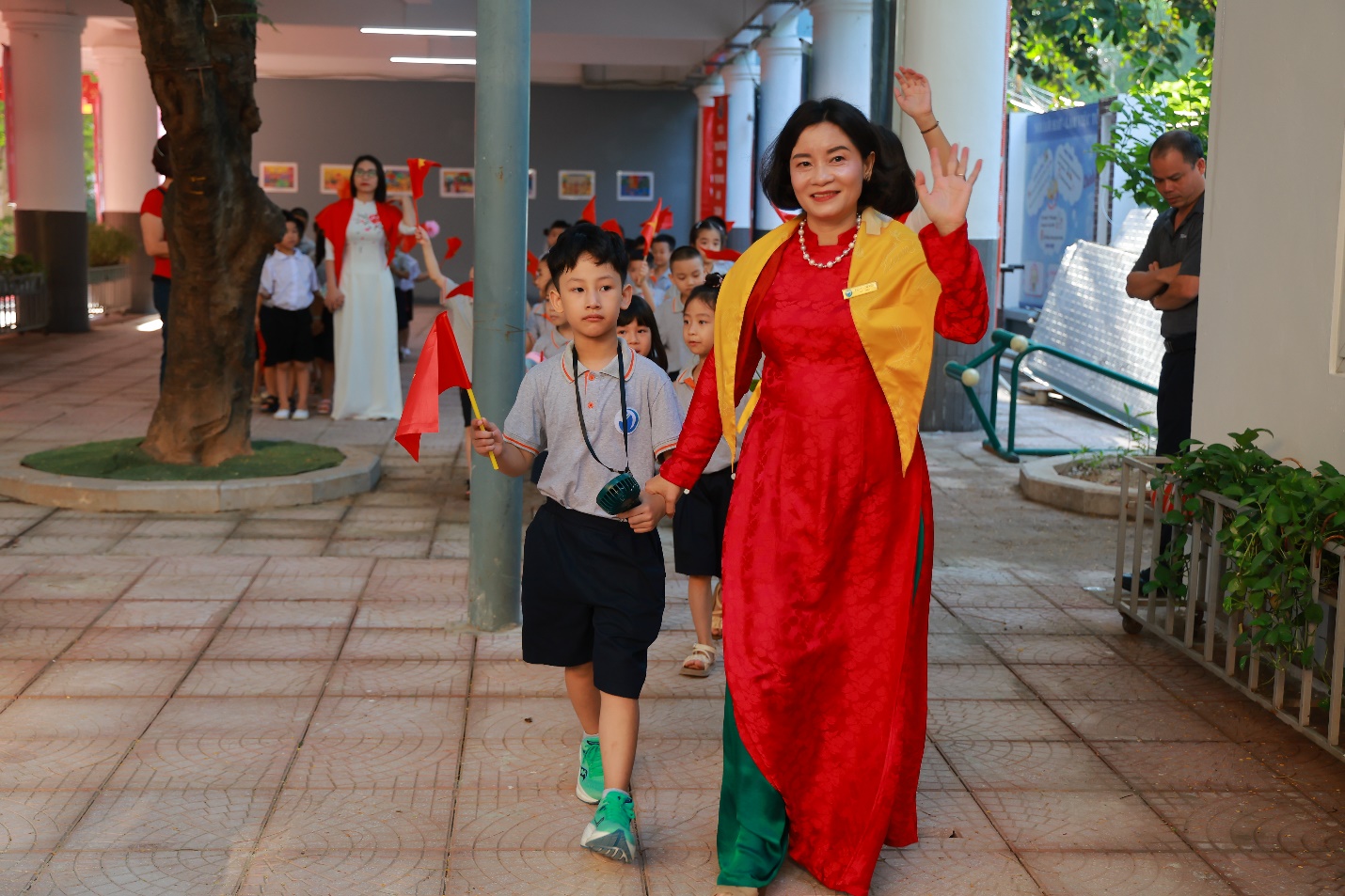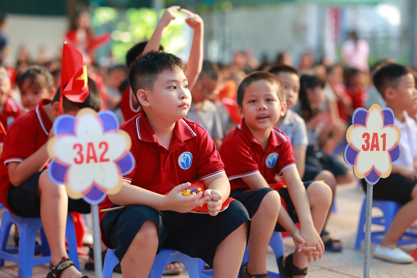 Điểm nhấn xúc động nhất của buổi lễ là khoảnh khắc chào đón các em học sinh lớp 1 – những "nhân vật đặc biệt" của năm học này. Trong tiếng trống trường rộn rã và những tràng pháo tay nồng nhiệt, các em bé với đôi mắt tròn xoe, ngơ ngác nhưng đầy háo hức đã bước chân vào ngôi nhà chung Vạn Phúc. Các thầy cô giáo và các anh chị lớp lớn đã dành những tràng pháo tay, những lời chào yêu thương nhất để các em nhanh chóng hòa nhập, mỗi ngày đến trường sẽ là một ngày vui để khám phá những điều mới lạ.