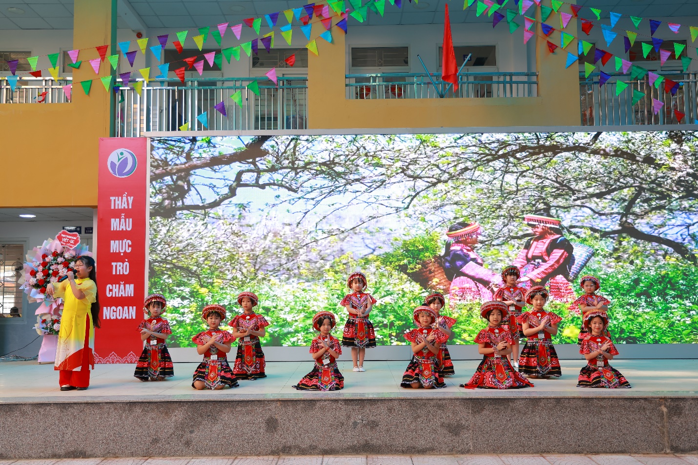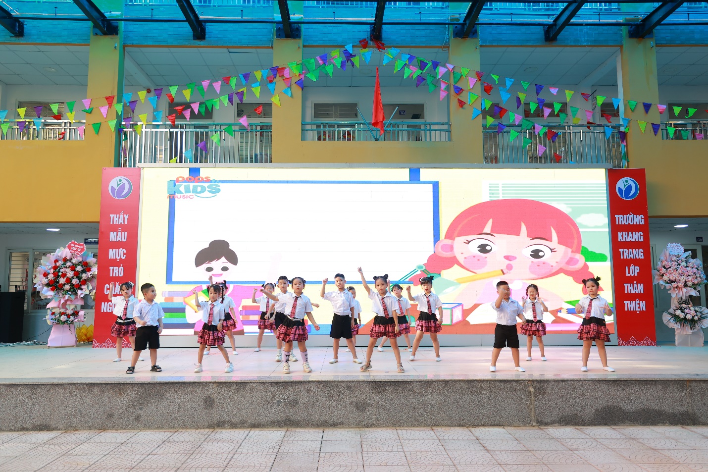 Các tiết mục văn nghệ do câu lạc bộ măng non biểu diễn đã mang lời ca, tiếng hát ca ngợi niềm tự hào dân tộc và niềm vui khi đến trường qua các bài hát: “Vui đến trường” “Việt Nam ơi” và ‘Mùa thu ngày khai trường’. Đặc biệt tiết mục hát múa ‘Bước chân đến trường’ do em Nguyễn Khánh Huyền học sinh lớp 4A3 biểu diễn là ca sĩ nhí xuất sắc Ikids Việt Nam 2025.