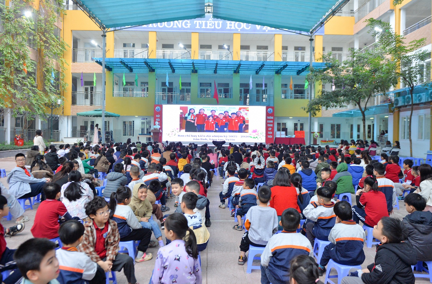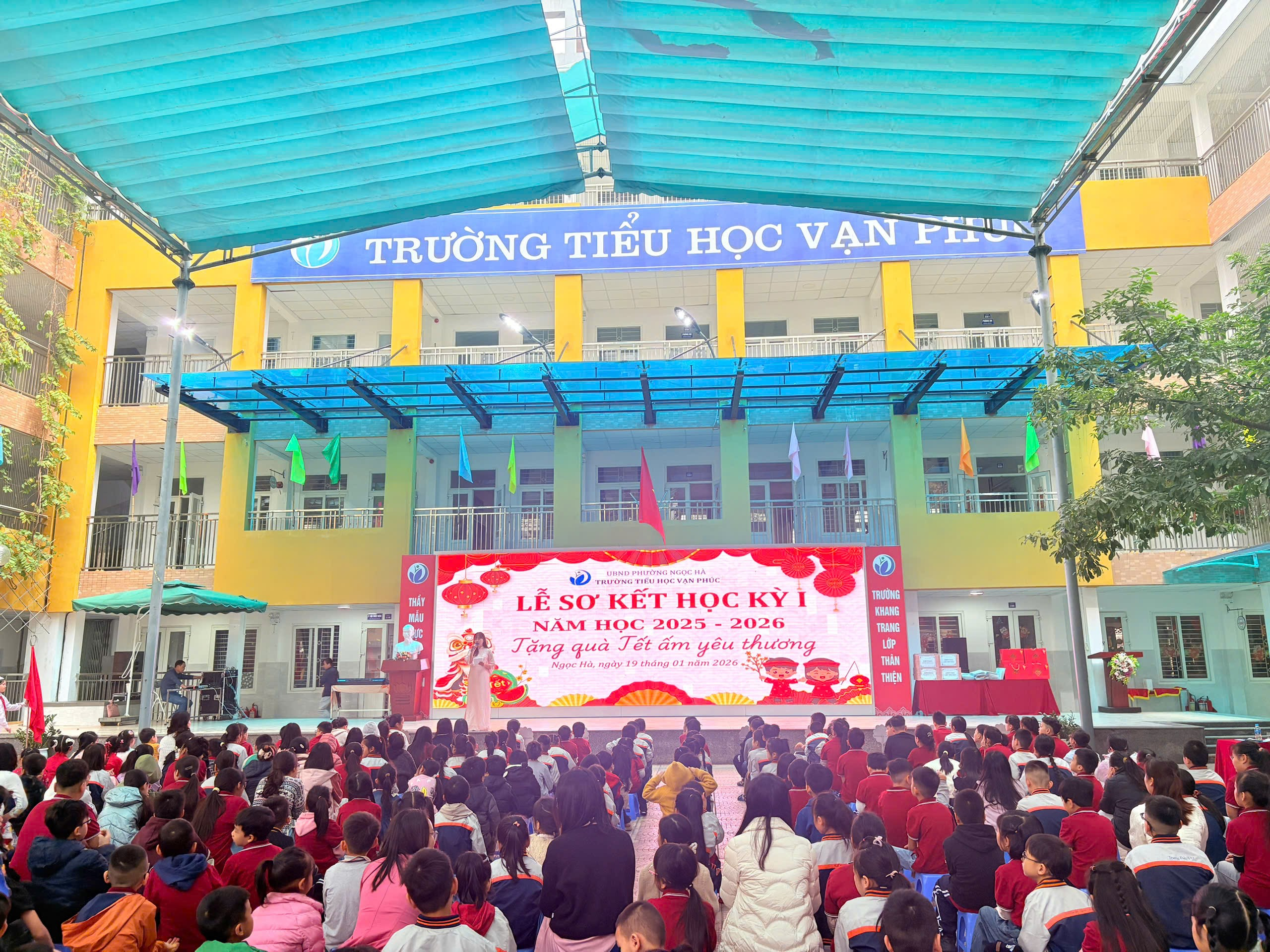 Sau nghi lễ chào cờ trang nghiêm, Nhà giáo Vũ Hương Lan - Hiệu trưởng nhà trường đã đọc báo cáo sơ kết học kỳ I năm học 2025-2026. Trong bài báo cáo, cô đã nhấn mạnh những thành tích mà tập thể giáo viên, học sinh nhà trường đã đạt được trong học kỳ qua. Đó là những kết quả ghi nhận sự phấn đấu nỗ lực của các em học sinh, sự tận tâm, nhiệt tình, trách nhiệm trong công việc của các cán bộ, giáo viên và nhân viên nhà trường. Qua bài phát biểu của cô, thầy và trò trường Tiểu học Vạn Phúc càng thêm tự hào về những thành tích mà nhà trường đã đạt được trong học kỳ vừa qua.