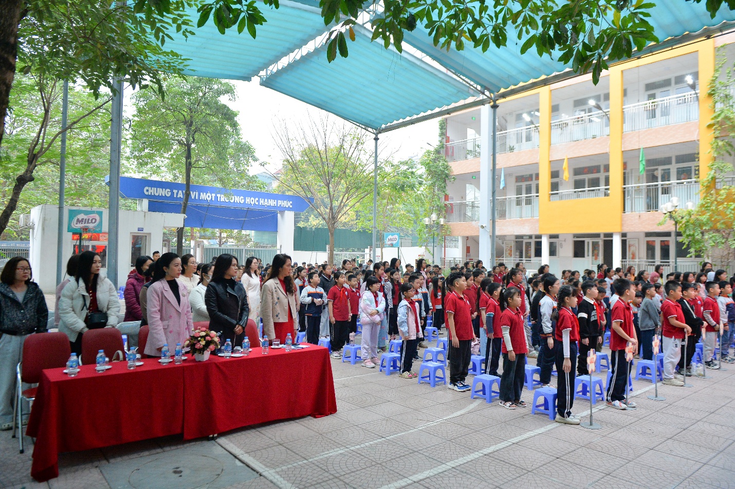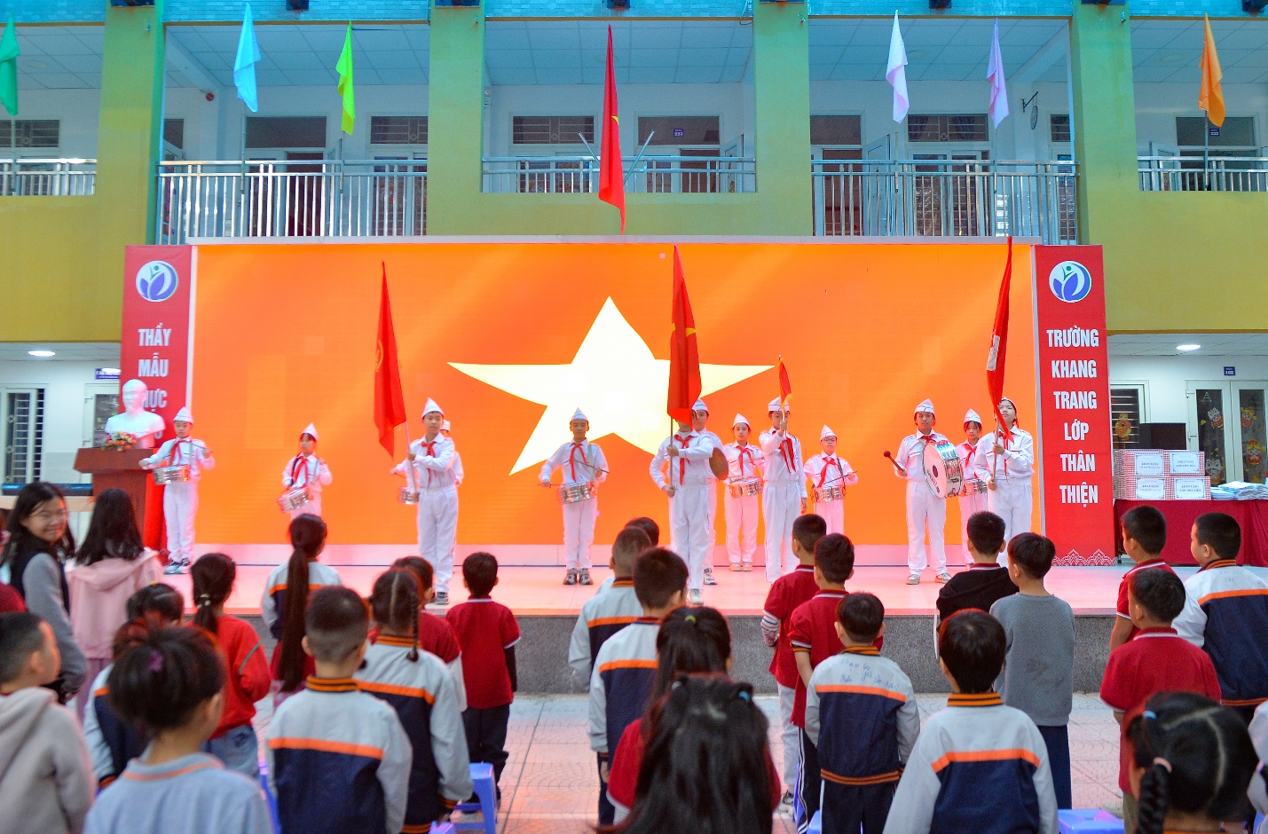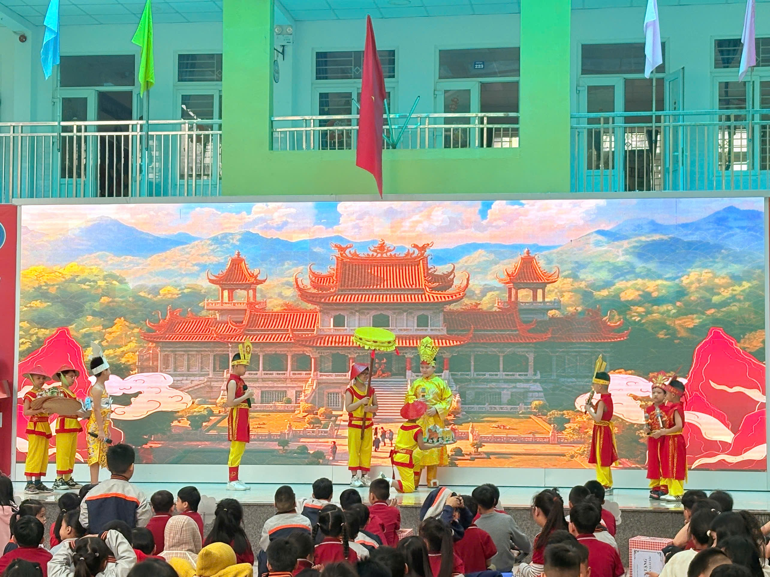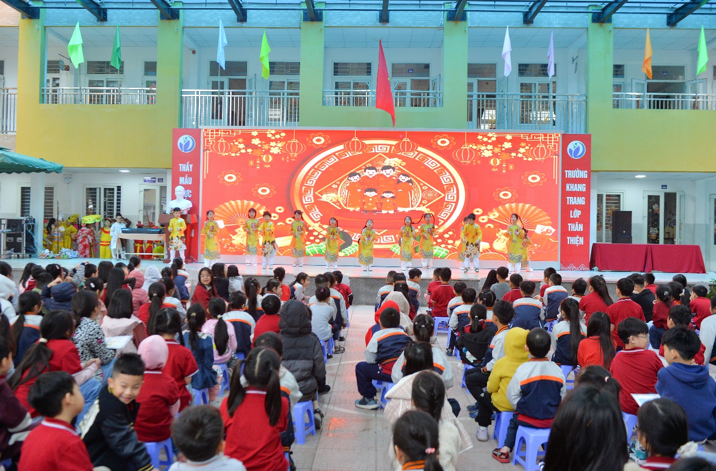 Mở đầu buổi lễ là những giai điệu mùa xuân trong trẻo và rộn ràng: tiếng đàn “Mùa xuân ơi” ngân vang qua phần thể hiện đầy cảm xúc của em Đức Bảo – học sinh lớp 5A3, tiếp nối là tiết mục nhảy “Nụ cười xuân” tươi vui, rực rỡ sắc màu do các bạn học sinh lớp 3A1 trình diễn, mang đến không khí ấm áp và tràn đầy niềm hân hoan cho toàn bộ chương trình.