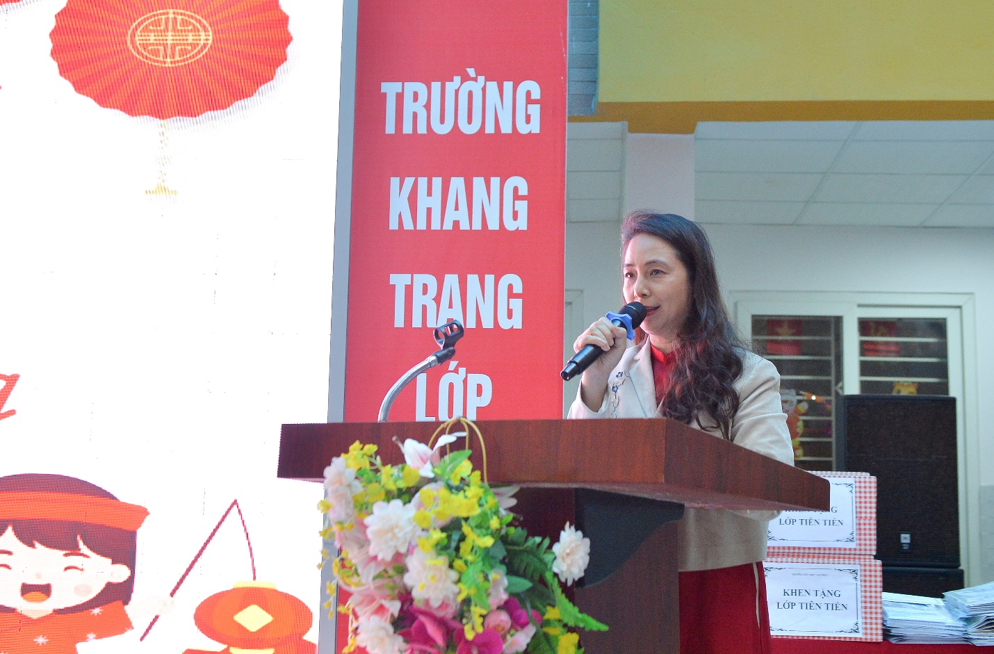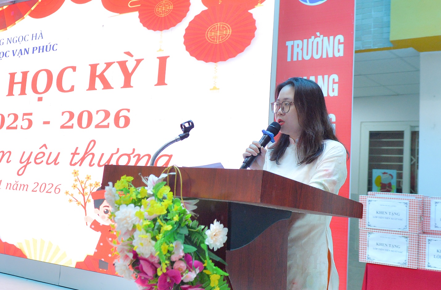 Nhà giào Vũ Hương Lan - Hiệu trưởng nhà trường đọc báo cáo sơ kết học kì I năm học 2025-2026