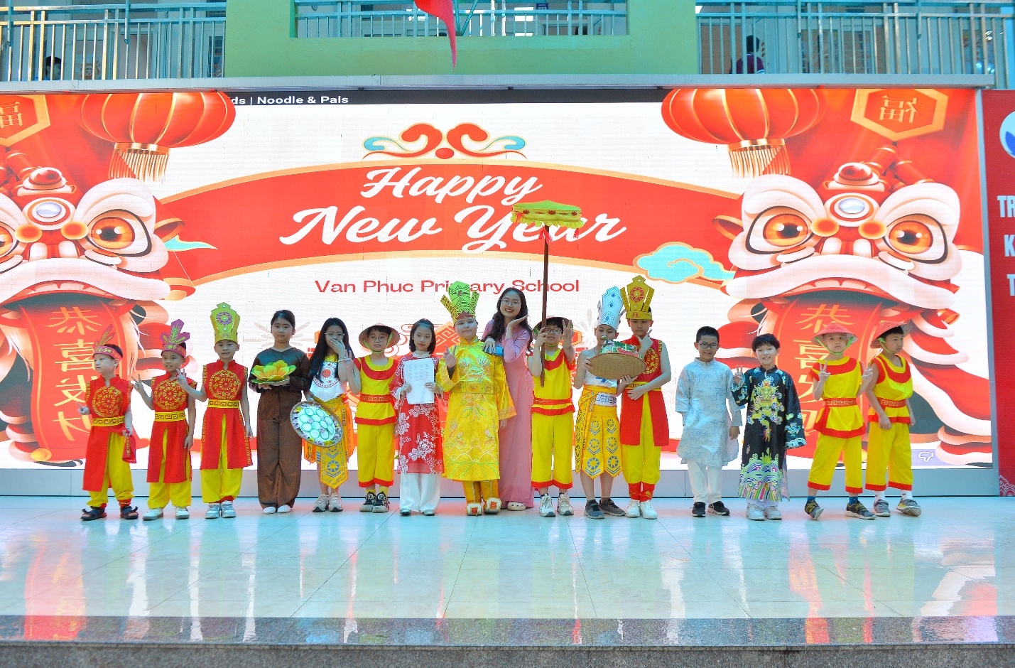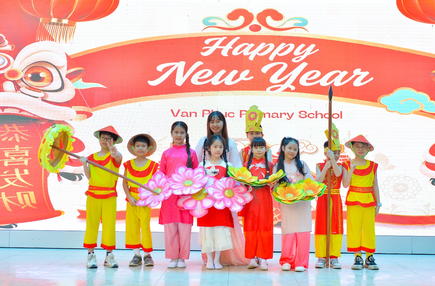 Kết thúc chương trình là tiết mục nhảy vô cùng sôi động đến từ các bạn học sinh lớp 3A2 với bài “Một năm mới bình an” và kịch “Lang Liêu” đến từ các bạn học sinh Trường Tiểu học Vạn Phúc