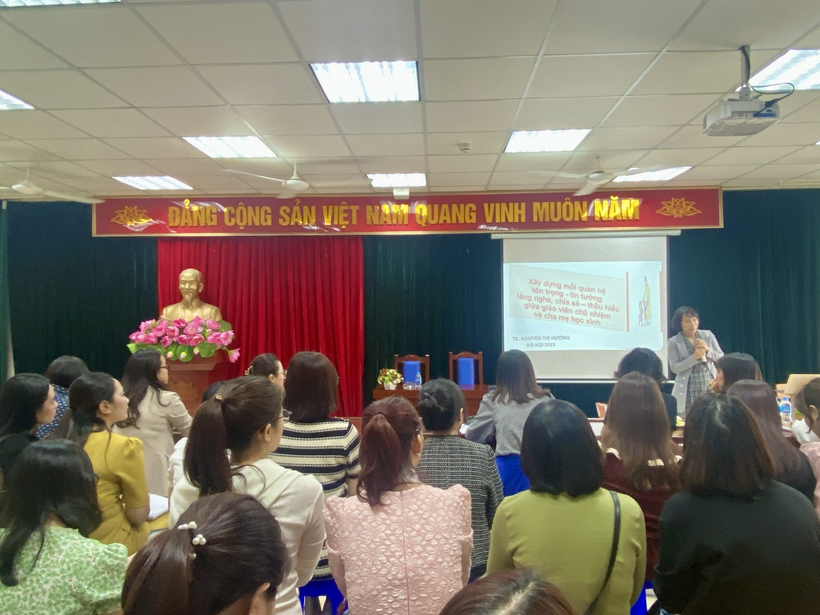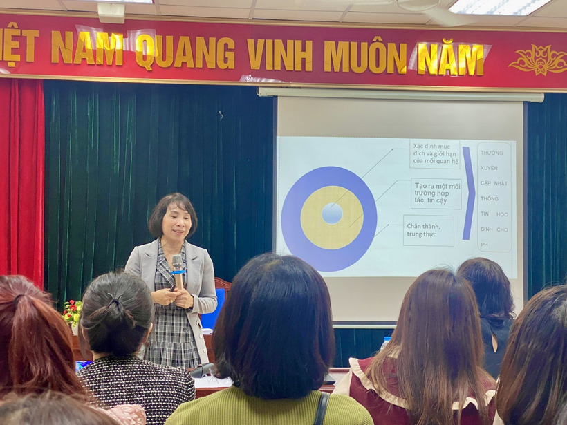 Đặc biệt, trong các buổi họp phụ huynh cần tạo môi trường hợp tác, giáo viên còn có thể định hướng, trao đổi những biện pháp giúp cha mẹ gần gũi, dễ dàng chia sẻ với con em mình, không chỉ về học tập mà còn ở rất nhiều hoạt động khác. Tiến sĩ Nguyễn Thị Hường đã đưa ra rất nhiều gợi ý giúp các cô giáo trong việc xây dựng kịch bản, đổi mới cách thức tổ chức họp phụ huynh: “Chia sẻ để thấu hiểu”.
