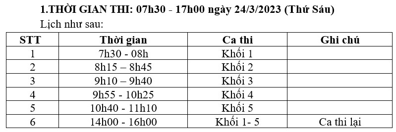 - Giấy nháp thí sinh tự chuẩn bị.