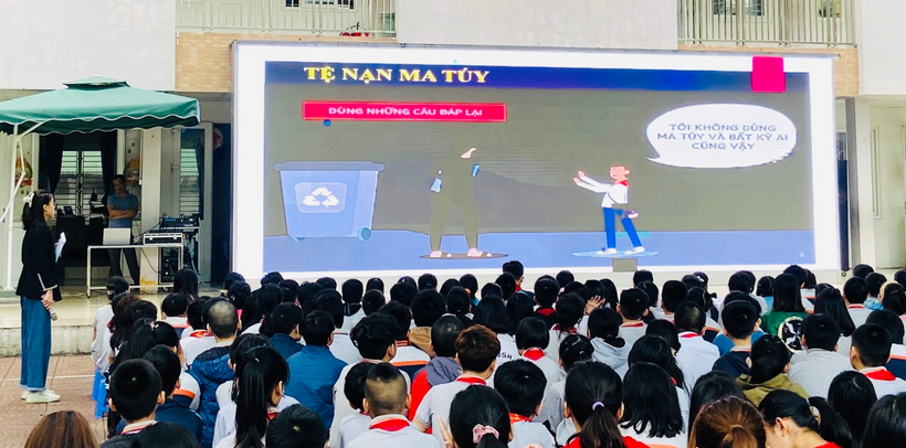 Thông qua các hình ảnh, dẫn chứng và bài thuyết minh, Liên đội nhà trường đã thông tin đến các em học sinh về tác hại ma tuý và thuốc lá điện tử; đặc điểm nhận diện của một số loại ma túy phổ biến hiện nay; cách nhận biết và các biểu hiện thường gặp đối với người nghiện ma túy, người sử dụng thuốc lá điện tử; thủ đoạn của tội phạm ma túy và thuốc lá điện tử … Đồng thời, phổ biến các kiến thức về chủ trương của Đảng, chính sách, pháp luật của Nhà nước về phòng chống ma túy, tội phạm ma túy; hình thức xử lý học sinh khi vi phạm mua bán, tàng trữ, sử dụng thuốc lá điện tử trong trường học…