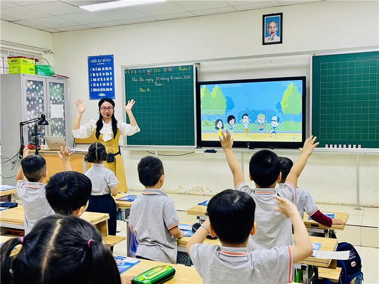 Cô giáo Phan Huyền Thương - GVCN lớp 1A1 trong tiết dạy môn Toán