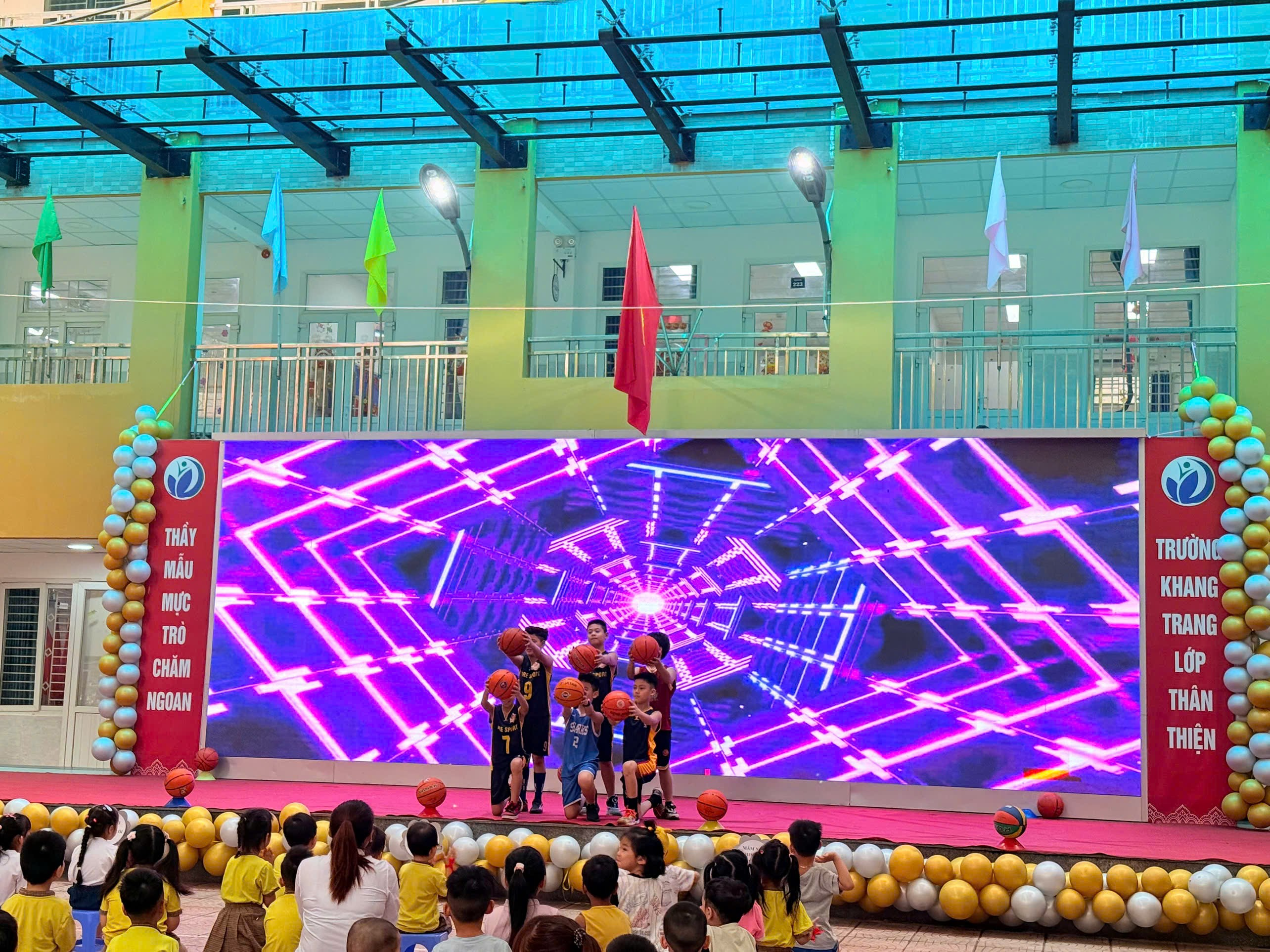 Ngay từ sáng sớm, các bé đã có mặt tại khu vực check-in với tâm trạng háo hức, vui tươi. Sau khi ổn định đội hình tại sân trường, chương trình chính thức bắt đầu với những tiết mục văn nghệ đặc sắc do học sinh Trường Tiểu học Vạn Phúc biểu diễn. Những điệu múa, lời ca trong trẻo cùng màn đồng diễn sôi động đã mang đến không khí sôi nổi, cuốn hút, nhận được sự cổ vũ nhiệt tình từ các bé mầm non.