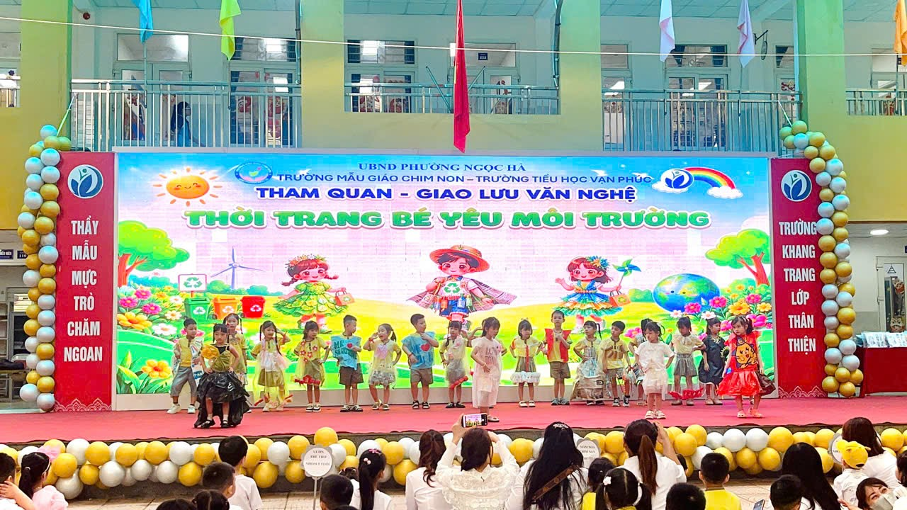 Đặc biệt, chương trình thêm phần ấn tượng với màn trình diễn trang phục tái chế đầy sáng tạo đến từ các em học sinh Trường Mầm non Chim Non. Những bộ trang phục được thiết kế từ các vật liệu thân thiện với môi trường không chỉ thể hiện sự khéo léo, đáng yêu của các bé mà còn gửi gắm thông điệp ý nghĩa về bảo vệ môi trường.