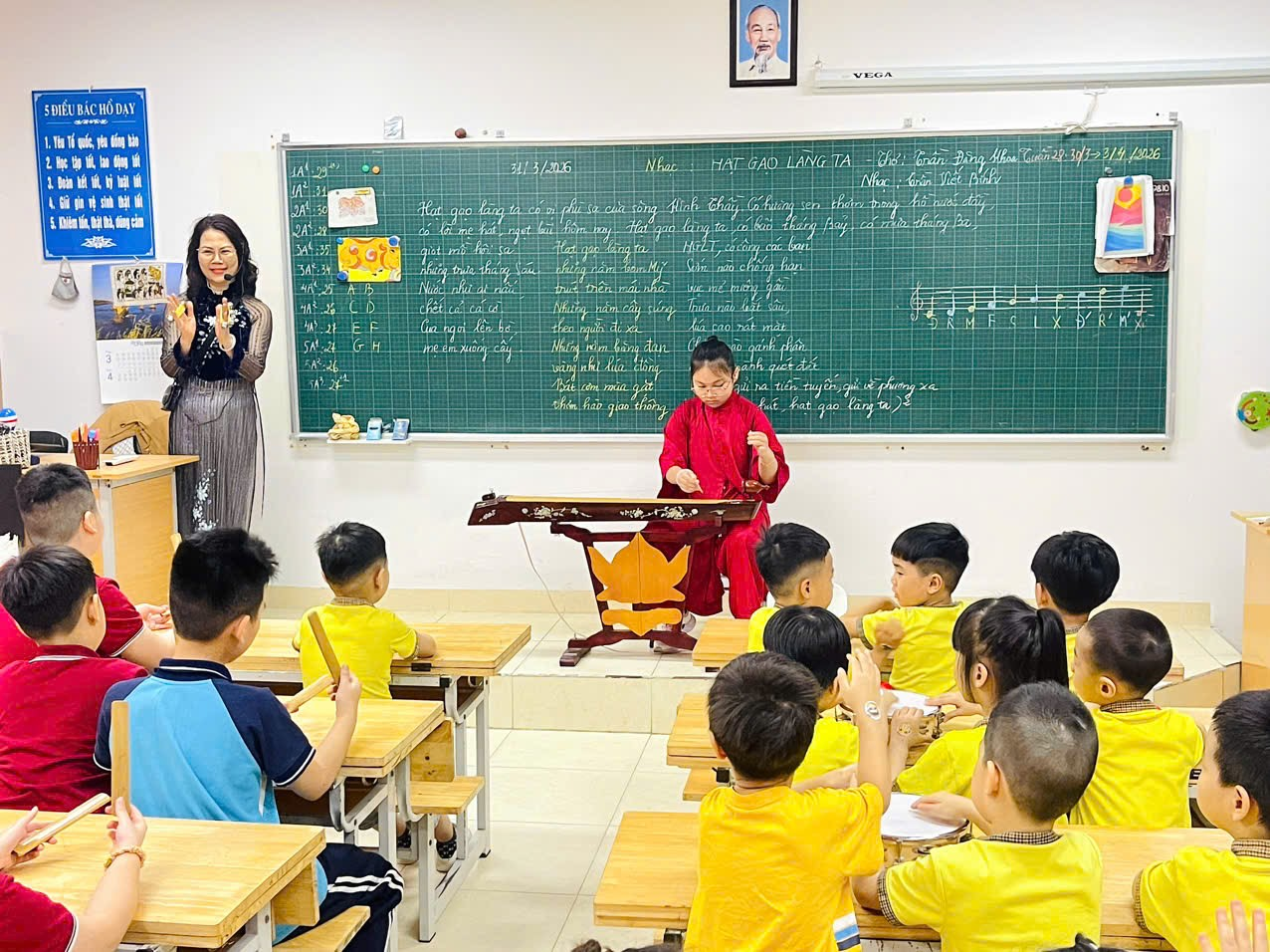 Các bé hào hứng tham gia hoạt động âm nhạc.