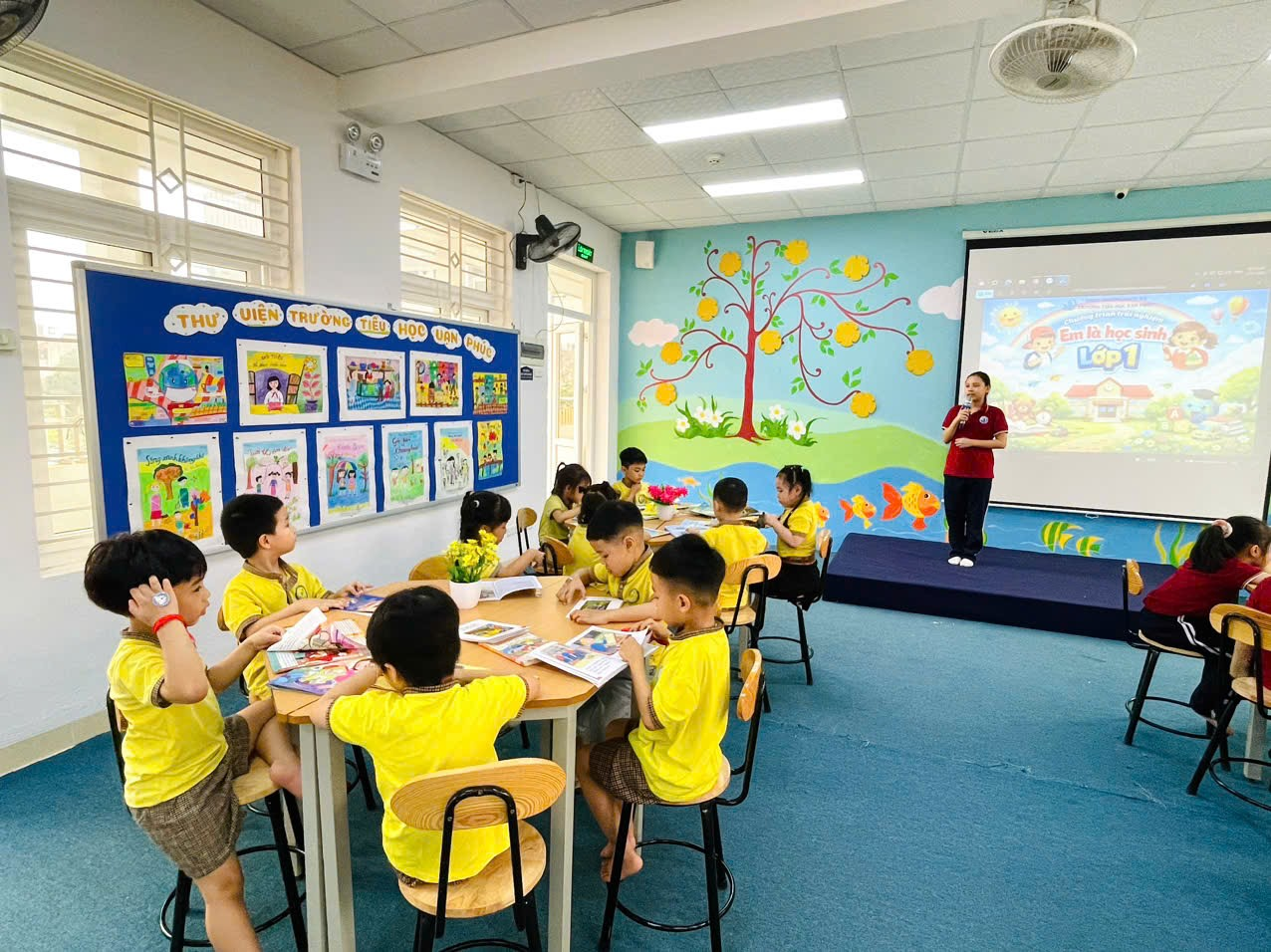 Trạm “Em là học sinh lớp 1”: Làm quen với không gian lớp học, bài giảng điện tử và các hoạt động học tập đầu tiên.