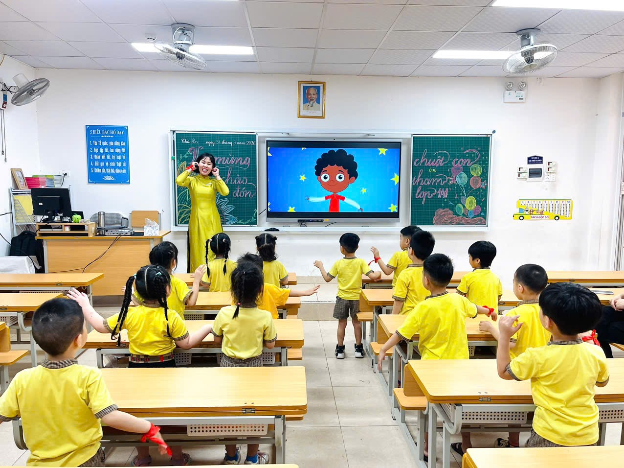 Khoảnh khắc lưu niệm đáng nhớ của các bé tại lớp học lớp 1.