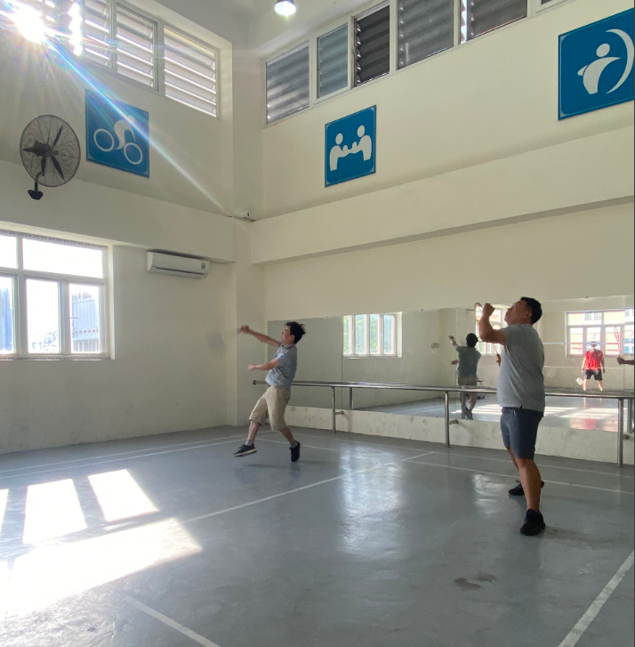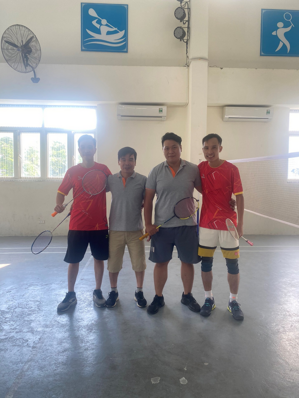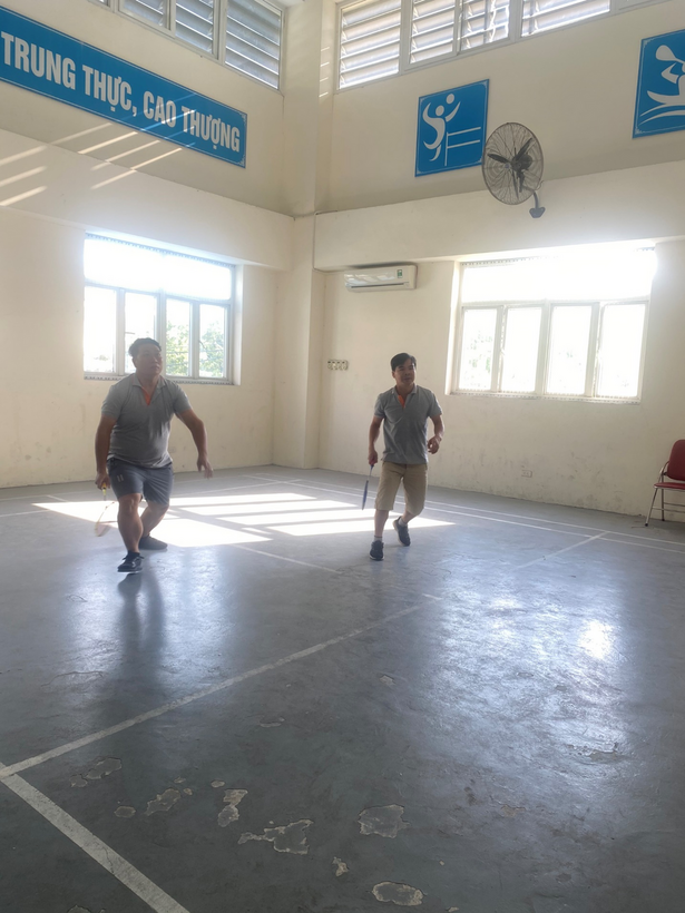 Thầy giáo Đỗ Văn Phát và Nguyễn Mạnh Cường tham gia thi môn Cầu lông