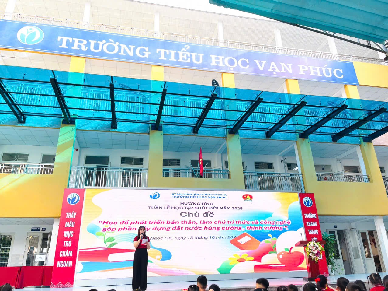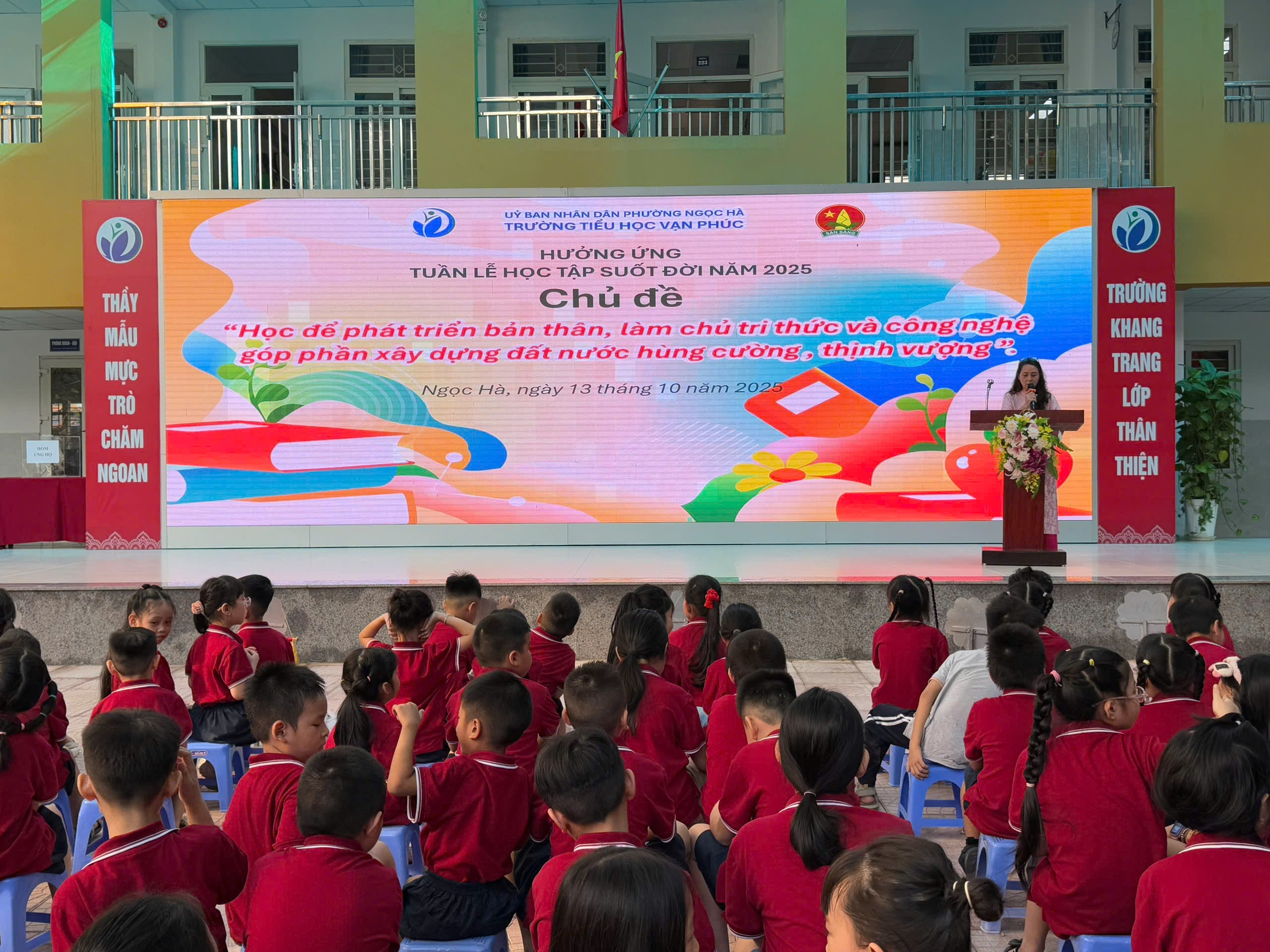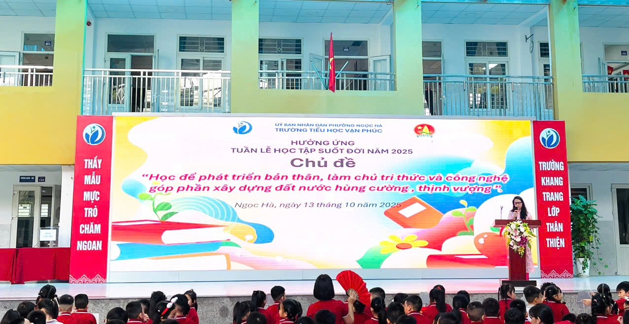 Thực hiện chỉ đạo của Bộ Giáo dục và Đào tạo, đồng thời nhằm lan tỏa tinh thần “Học tập suốt đời” đến toàn thể cán bộ, giáo viên, học sinh. Trường Tiểu học Vạn Phúc, ngõ 194 Đội Cấn, phường Ngọc Hà, thành phố Hà Nội đã long trọng tổ chức Lễ khai mạc hưởng ứng tuần lễ học tập suốt đời năm 2025 (từ ngày 1/10/2025 đến ngày 7/10/2025). Đây là hoạt động có ý nghĩa sâu sắc, nhằm lan tỏa tinh thần học tập không ngừng đến toàn thể cán bộ, giáo viên, học sinh và phụ huynh, đồng thời khẳng định vai trò của giáo dục trong sự phát triển bền vững của đất nước.