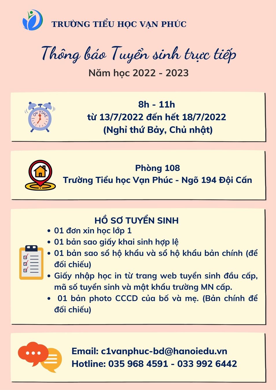 Thông báo nộp hồ sơ tuyển sinh lớp 1 trực tiếp năm học 2022 - 2023