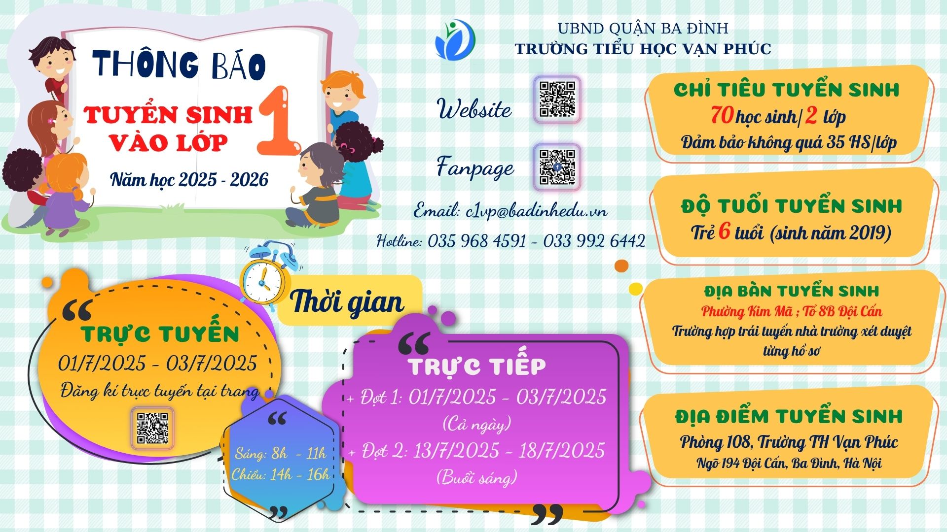 Kế hoạch Tuyển sinh vào các trường mầm non, lớp 1, lớp 6 năm học 2025-2026 trên địa bàn quân Ba Đình