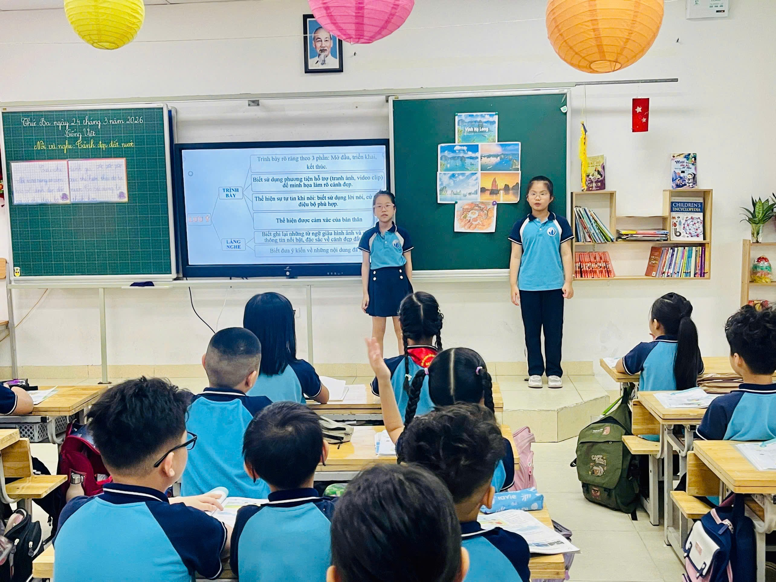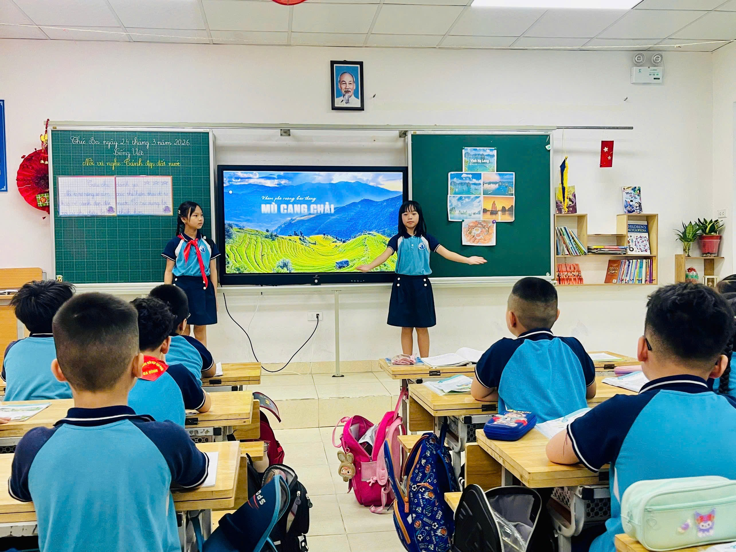 Ngày 24 tháng 3 năm 2026, lớp 3A2 đã tổ chức thành công tiết hội giảng môn Tiếng Việt với bài Nói và nghe: Cảnh đẹp đất nước dưới sự hướng dẫn tận tình và sáng tạo của cô giáo Vũ Linh Hương. Đây không chỉ là một tiết học thông thường mà còn là một hành trình khám phá đầy màu sắc, nơi các em học sinh được hóa thân thành những “hướng dẫn viên du lịch nhí”, tự tin giới thiệu vẻ đẹp của quê hương Việt Nam.