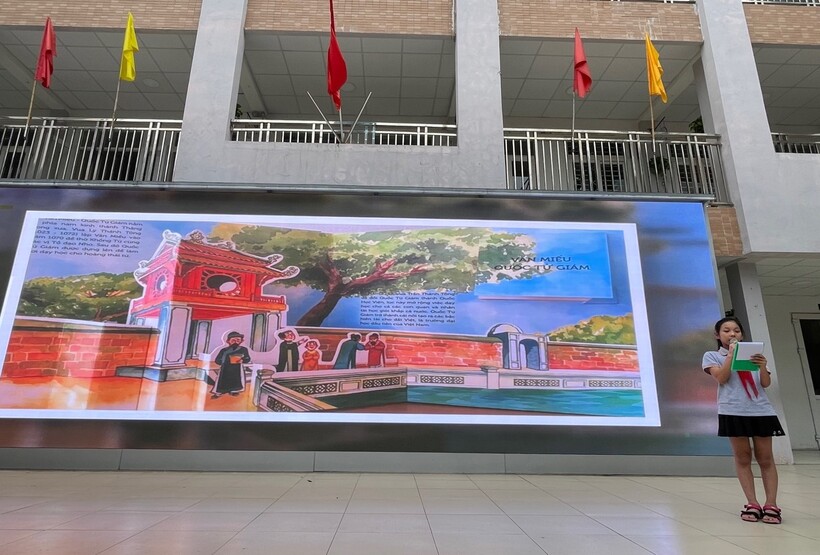 Những địa danh đã đi vào lịch sử, đi vào thơ ca trong những áng văn bất hủ đã được hai bạn Trần Văn Anh Khoa lớp 5A2 và bạn Trần Thanh Vân lớp 4A2 giới thiệu thông qua cuốn sách “Hà Nội ngàn năm ký ức” của nhà xuất bản Kim Đồng phối hợp với nhóm Cloud Pillow studio thực hiện.