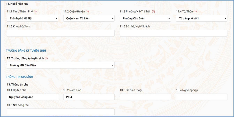 Bước 5: Phụ huynh nhập đầy đủ, chính xác thông tin của học sinh vào Phiếu thông tin học sinh.