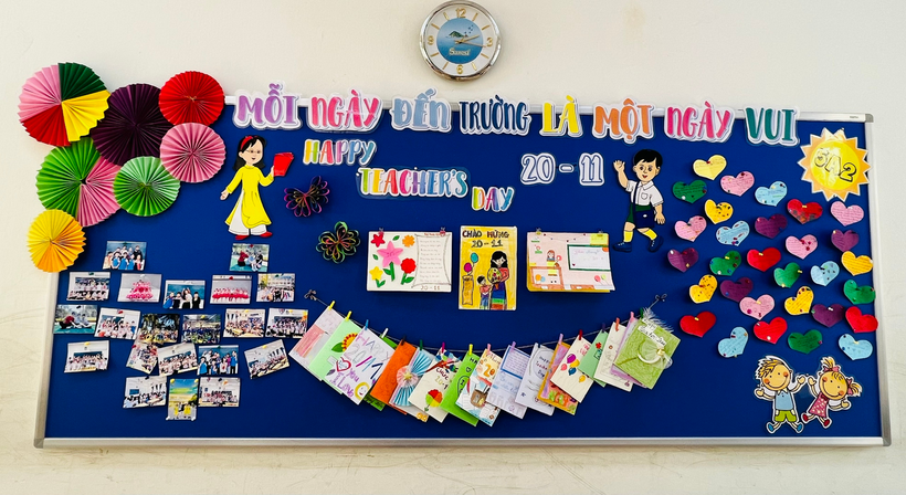 Ngay từ những tuần học đầu trong tháng 11, Liên đội trường Tiểu học Vạn Phúc đã phát động học sinh các chi đội trang trí bảng lớp học theo chủ đề tri ân ngày Nhà giáo Việt Nam và hoạt động thi viết chữ đẹp “Nét đẹp thầy trò”. Tất cả các chi đội đã hưởng ứng tích cực, cùng nhau trang trí những chiếc bảng vô cùng độc đáo, sáng tạo và ý nghĩa, mang nhiều thông điệp. Qua hoạt động ngày, các em đã phát huy được năng khiếu thẩm mĩ của mình qua nhiều hình thức như viết văn, viết thơ, vẽ tranh, làm bưu thiếp… Mỗi nét vẽ, nét chữ đều chứa đựng tình cảm của các họa sĩ nhí, nhà văn nhí dành cho những người đã luôn tận tình truyền đạt kiến thức, dìu dắt các em mỗi ngày.