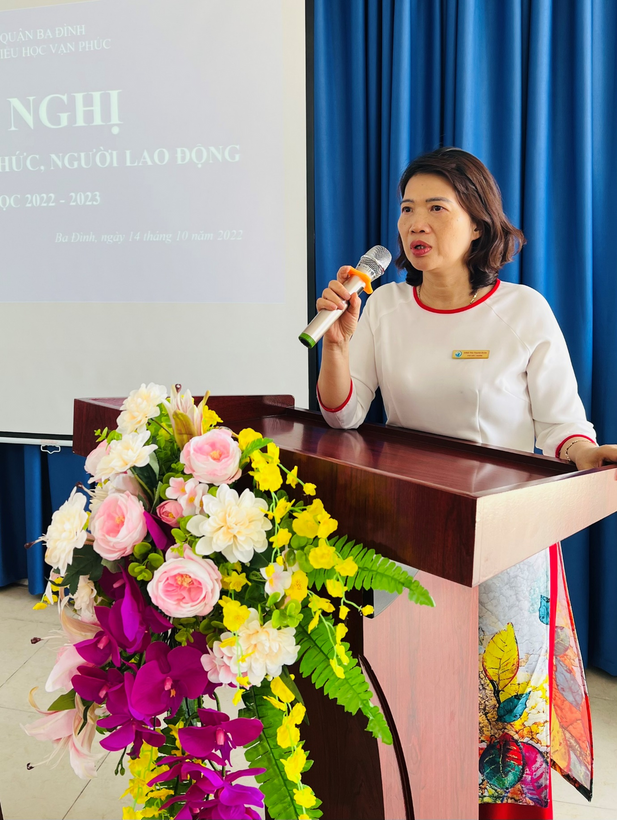 Tại Hội nghị, đồng chí Đinh Thị Thanh Xuân - Phó Hiệu trưởng nhà trường đã tổng kết thi đua và báo cáo đánh giá kết quả thực hiện Nghị quyết Hội nghị Cán bộ, viên chức, người lao động năm học 2021-2022. Vượt qua một năm học trong bối cảnh đại dịch COVID-19 đầy khó khăn, bằng sự nỗ lực của cả tập thể, Trường Tiểu học Vạn Phúc đã đạt danh hiệu Tập thể Lao động Tiên tiến cấp quận, cá nhân đạt 02 chiến sĩ thi đua, 15 Lao động Tiên tiến cấp quận. Những thành tích đã đạt được của năm học 2021-2022 sẽ là động lực phấn đấu cho năm học mới.