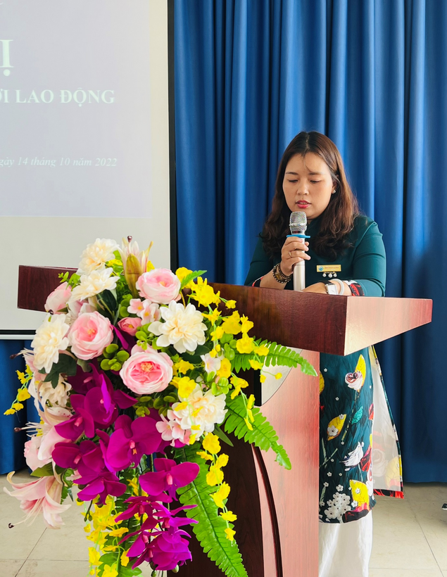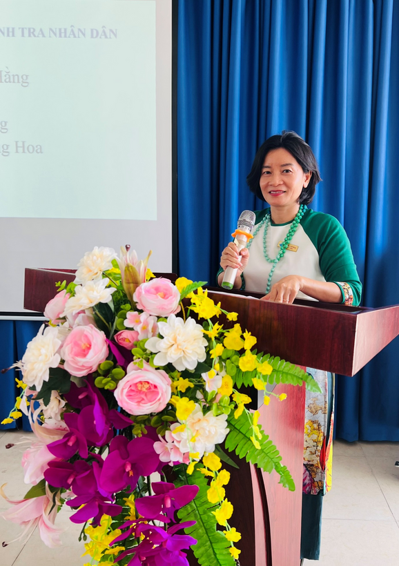 Đồng chí Đỗ Thùy Linh báo cáo tổng kết nhiệm kì của Ban Thanh tra nhân dân