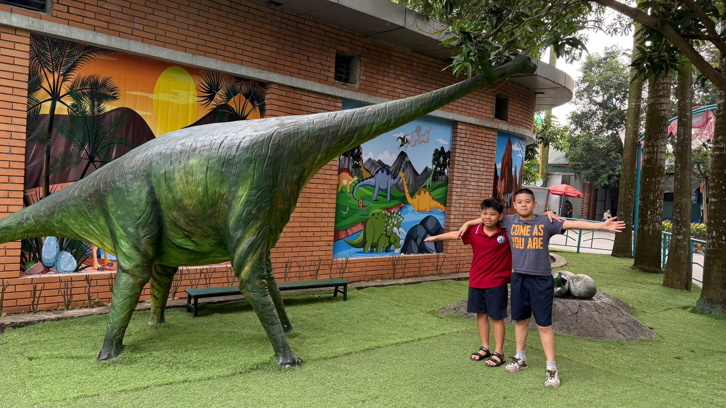 Ngay từ buổi sáng, các con học sinh lớp 5A2 đã được hòa mình vào không gian khám phá đầy sôi động với hoạt động xem phim 3D, mở rộng hiểu biết về thiên nhiên và khoa học qua những hình ảnh sống động. Tiếp đó là hành trình tìm hiểu tại Công viên Khủng long, nơi những mô hình khủng long khổng lồ khiến các bạn nhỏ vô cùng thích thú.