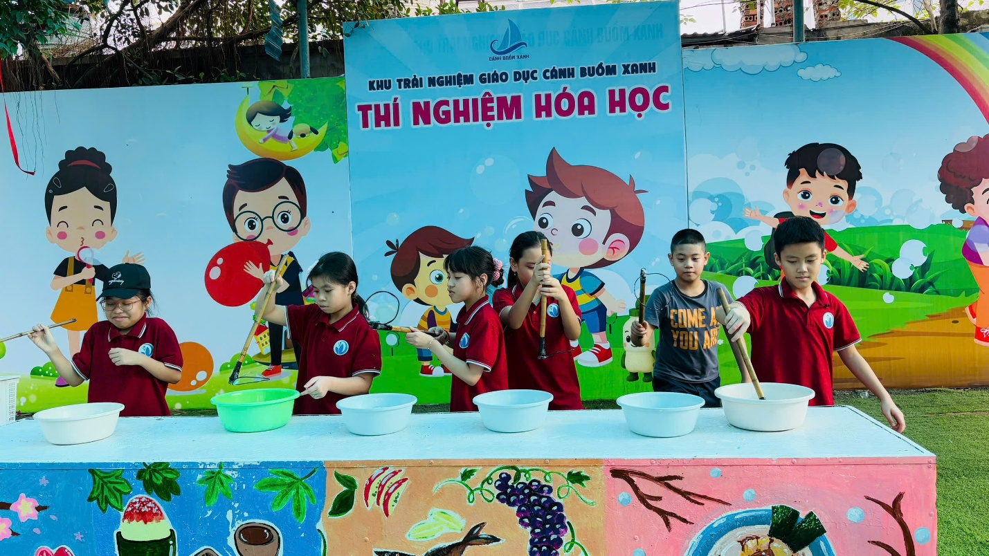 Song song với vui chơi, các hoạt động học tập trải nghiệm cũng được tổ chức sinh động và hấp dẫn. Tại lớp học bong bóng, lớp học tái chế – bảo vệ môi trường, học sinh được thỏa sức sáng tạo và học cách sống xanh, tái sử dụng vật liệu một cách hiệu quả.