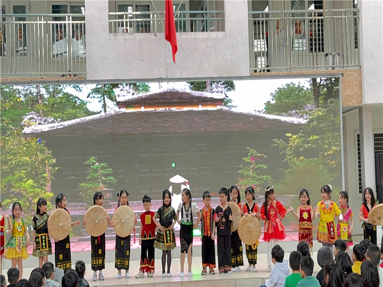 Giữa sân khấu rực rỡ sắc màu, từng bước chân nhỏ bé nhưng đầy tự tin của các em đã mang đến một không gian nghệ thuật sinh động, giúp khán giả cảm nhận rõ hơn về sự đa dạng của văn hóa Việt Nam. Tiếng nhạc rộn ràng, những nụ cười hồn nhiên và trang phục truyền thống nổi bật chắc chắn sẽ để lại ấn tượng sâu sắc trong lòng thầy cô, phụ huynh và các bạn học sinh toàn trường.