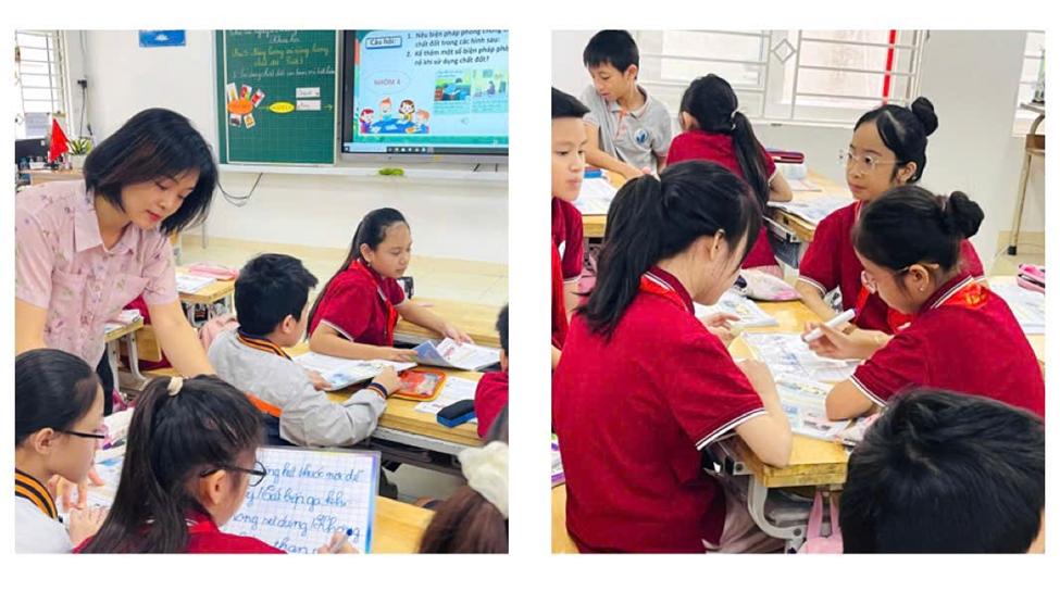 Cô giáo chỉ đóng vai trò là người định hướng, khéo léo dẫn dắt để mỗi nhóm học sinh đều có cơ hội thể hiện khả năng. Những ánh mắt háo hức, tiếng nói rộn ràng và hình ảnh các em tự tin làm chủ tiết học cho thấy hiệu quả của phương pháp lấy học sinh làm trung tâm trong giáo dục hiện đại.