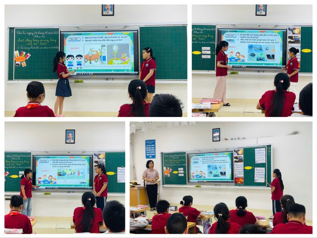 Trong suốt tiết học, các em học sinh trở thành nhân vật chính: thảo luận nhóm sôi nổi, tự tin trình bày kết quả, tham gia xử lí tình huống và chia sẻ những hiểu biết thực tế về an toàn khi sử dụng chất đốt. Qua đó, các em không chỉ nắm được kiến thức khoa học mà còn tích lũy những kĩ năng sống quan trọng, biết nhận diện nguy cơ và hành xử an toàn trong cuộc sống hàng ngày.