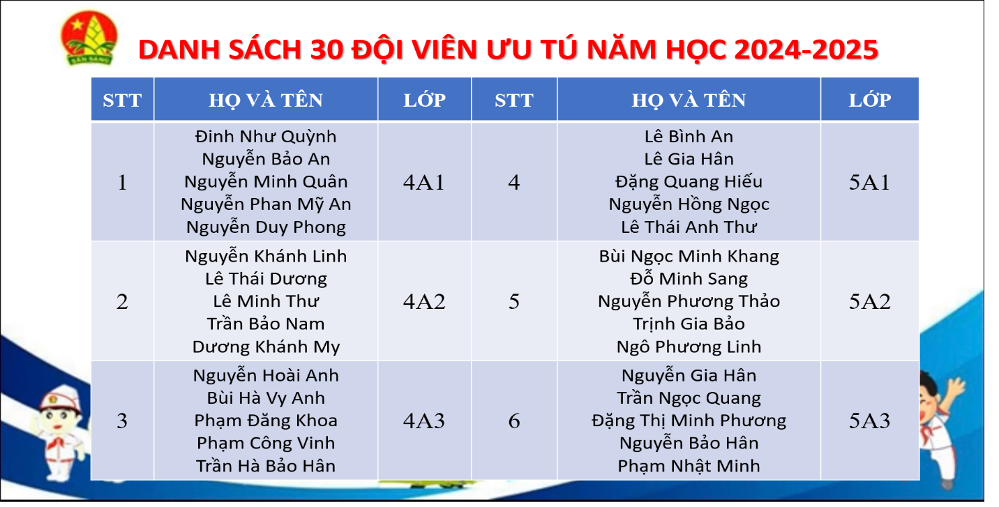 Danh sách 30 đội viên ưu tú được kết nạp Đội năm học 2024-2025