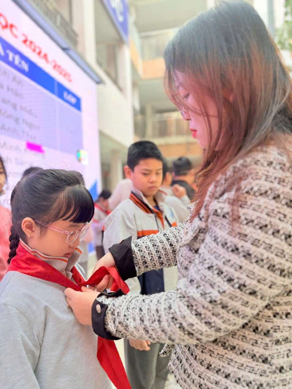 Buổi lễ diễn ra trong không khí vui tươi, phấn khởi. Trên gương mặt các em đội viên mới hiện rõ niềm vui, niềm vinh dự khi được trở thành đội viên của Đội Thiếu niên Tiền phong Hồ Chí Minh.