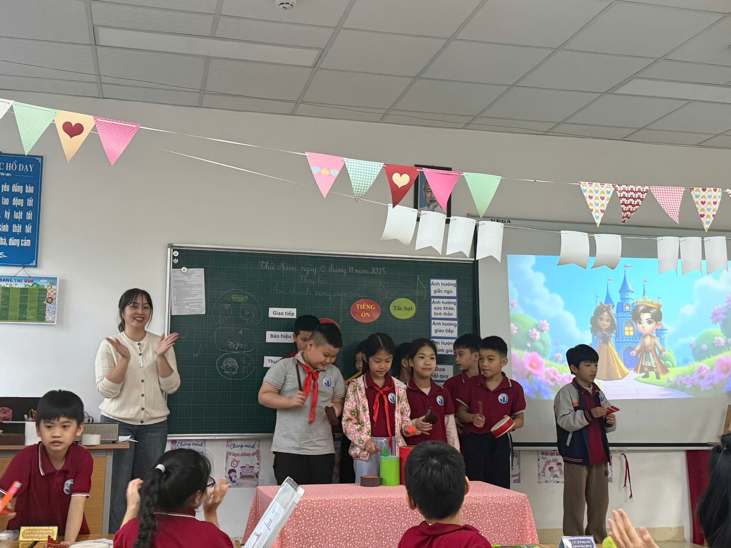 Khép lại Hội giảng của khối 4 là tiết Khoa học của cô giáo Đoàn Hồng Vân - GVCN lớp 4A1. Tiết học đã giúp học sinh nắm được về kiến thức về lợi ích và tác hại của âm thanh trong cuộc sống. Sau tiết học, học sinh tham gia làm STEM các loại nhạc cụ và các trò chơi để củng cố kiến thức.